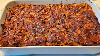 In this recipe, the sauce includes pepperoni. He would often add pepperoni (sometimes a whole stick without slicing) just to give the sauce extra flavor. He saved that piece of cooked pepperoni as his own special treat for later. For his baked ziti, the pasta is separated into to two batches in-between which is a layer of sliced fresh mozzarella cheese and basil pesto. That's also what makes is Nonno Alesiano's recipe.